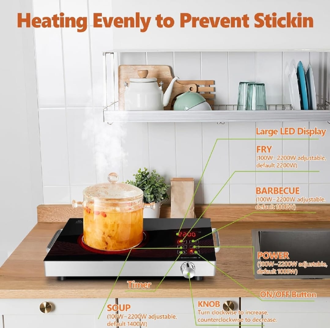 Features a durable, non-slip micro crystal plate that ensures stability during use, making cooking safer and easier.